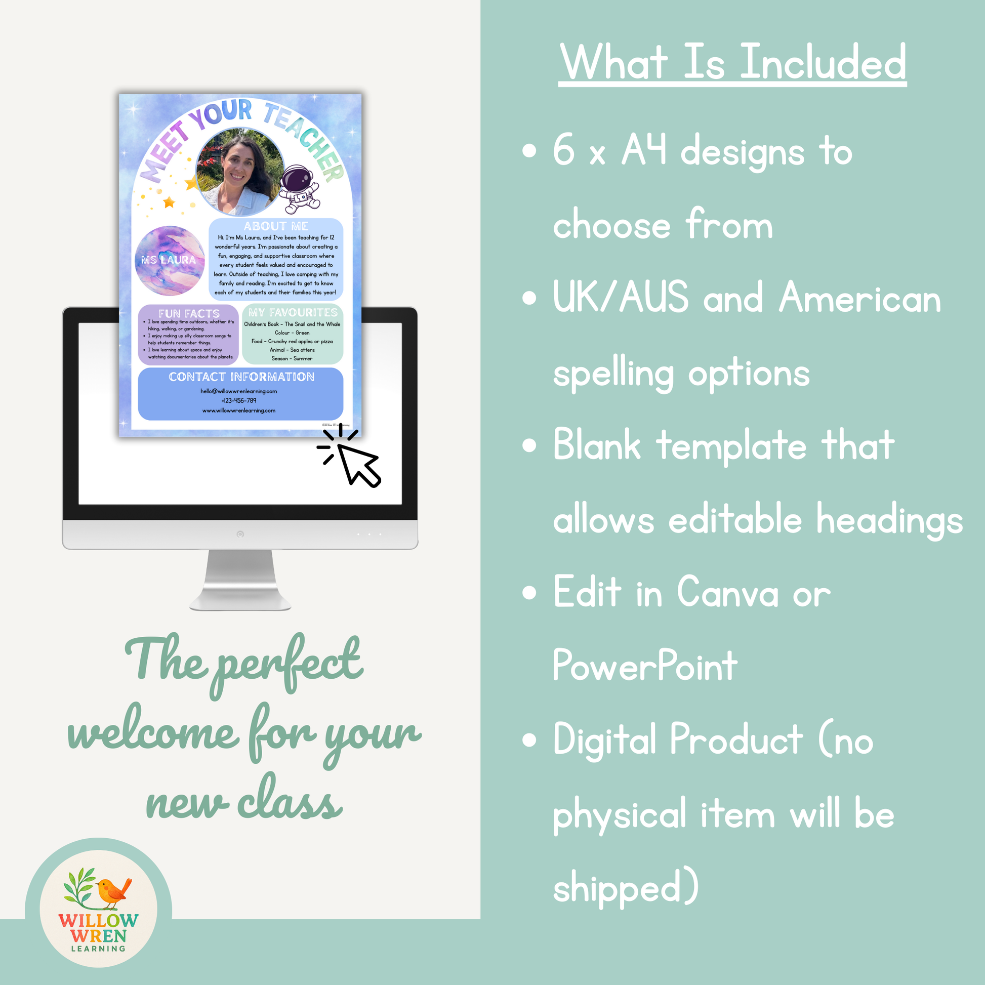 Create a welcoming classroom environment from the very first day with this Galaxy Dreams Meet the Teacher template set. Designed with busy teachers in mind, this editable resource helps you introduce yourself clearly and confidently while keeping your classroom decor organised and visually calming.